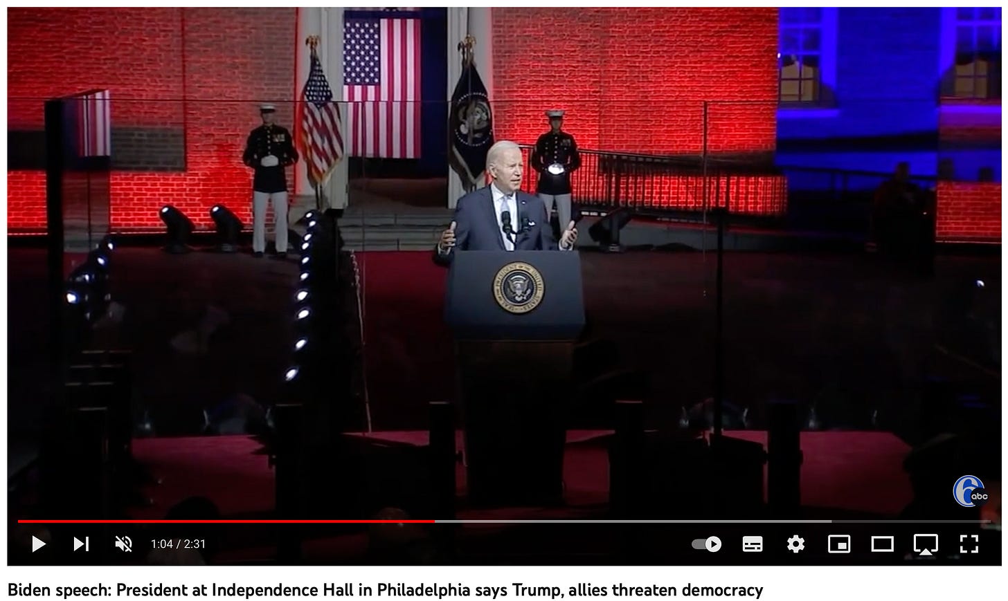The sitting corrupt Presidential Pretender, presented in 2020 as the moderate Unifier, but acting as the biggest divider in recent history, set the tone with his infamous speech in Philadelphia in autumn of 2022 already, with a darkly dramatic, flaming red background lighting worthy of Count Dracula.